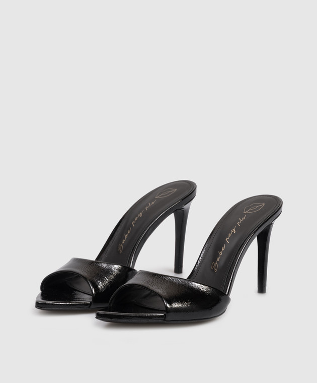Черные кожаные лакированные мюли