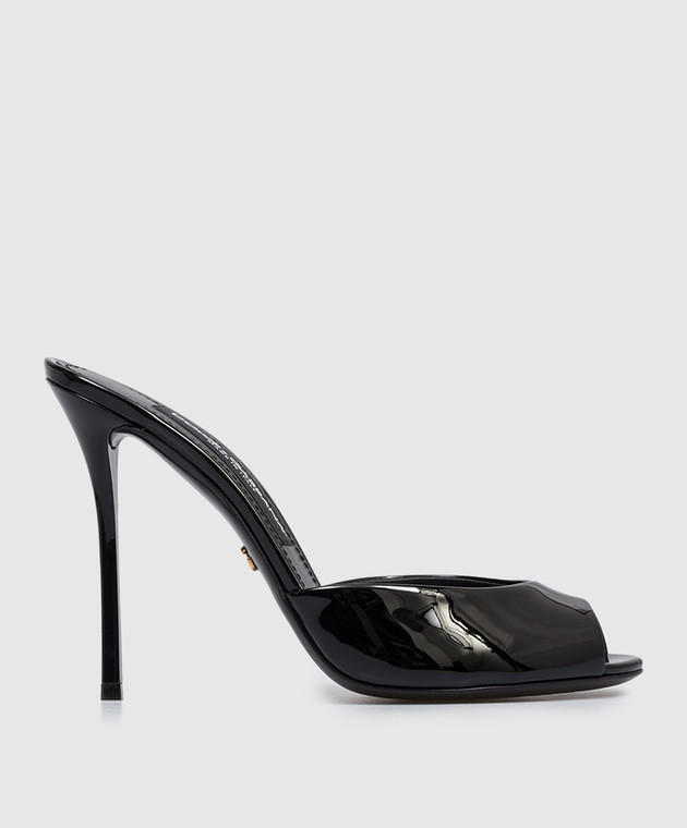 Черные кожаные лакированные мюли Keira