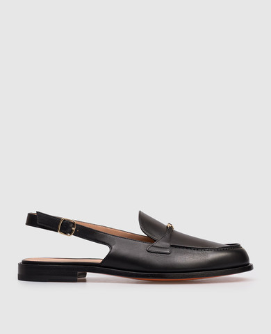 Черные кожаные лакированные слингбеки DOUBLE BOW с кристаллами