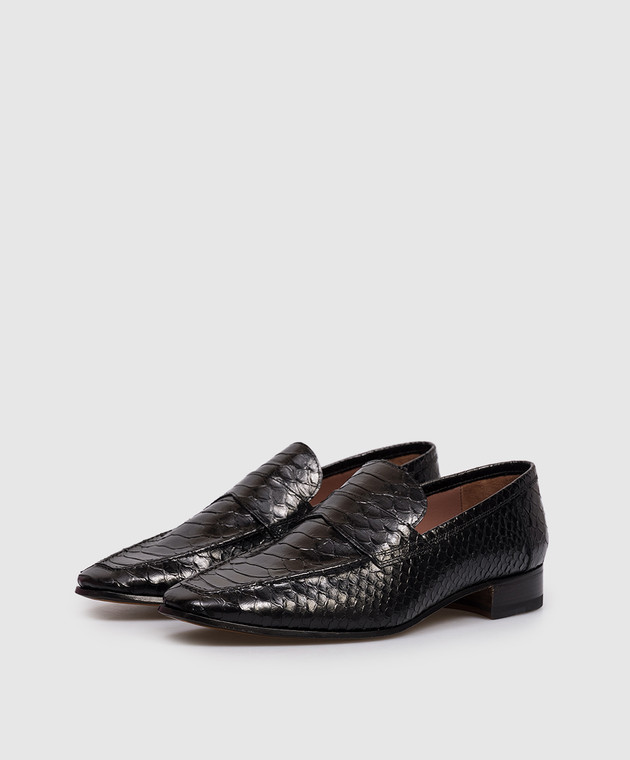 Черные кожаные лоферы ALAIN с тиснением под кожу рептилии