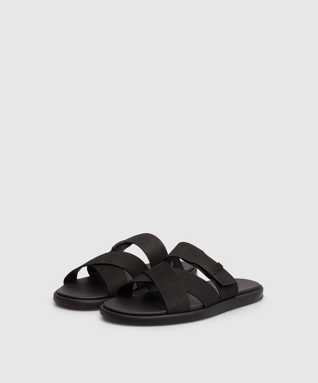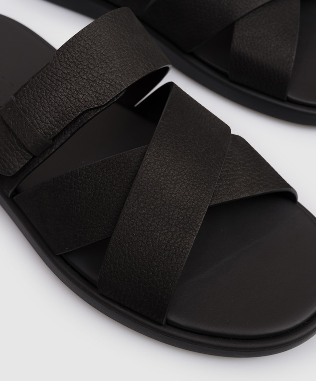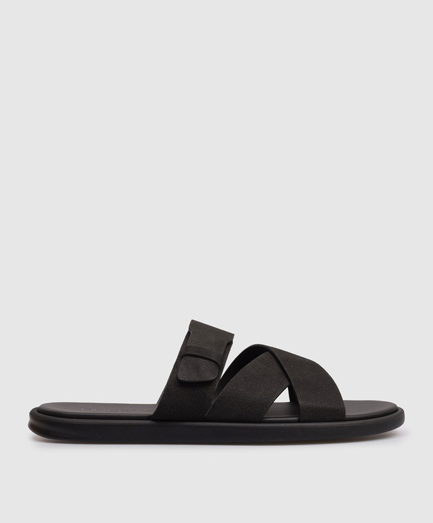 Черные кожаные шлепанцы