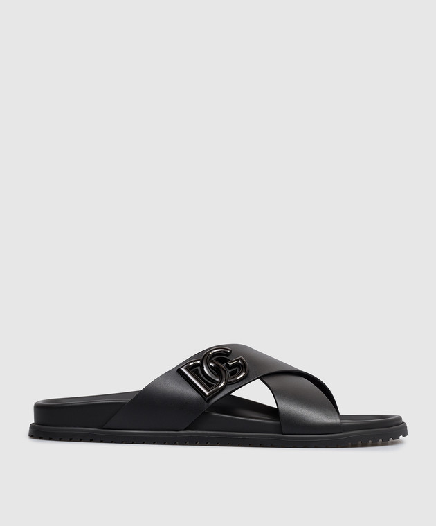 Черные кожаные шлепки с фактурной монограммой логотипа