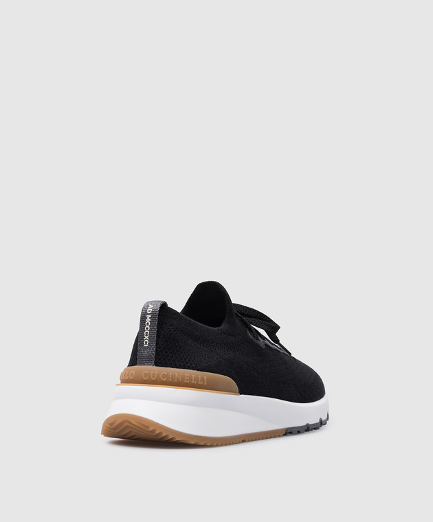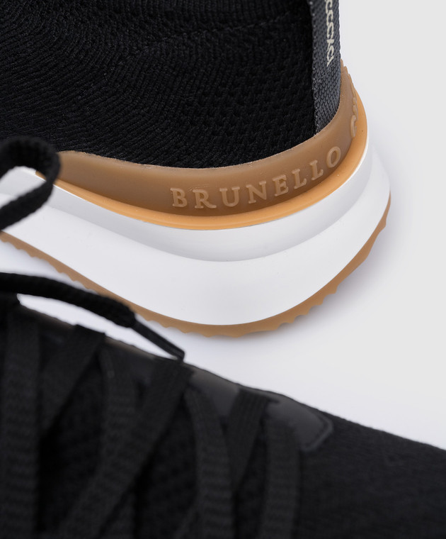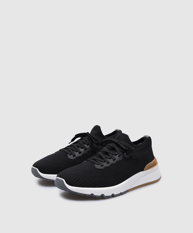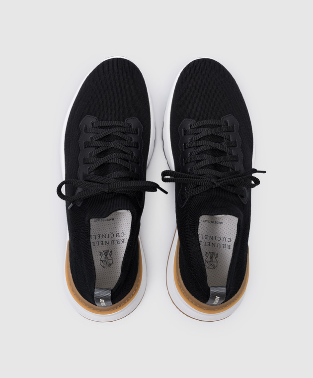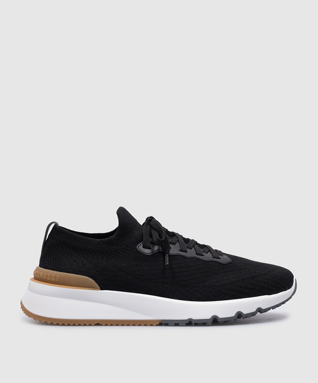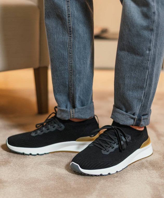 Черные кроссовки с кожаными вставками с фактурным логотипом
