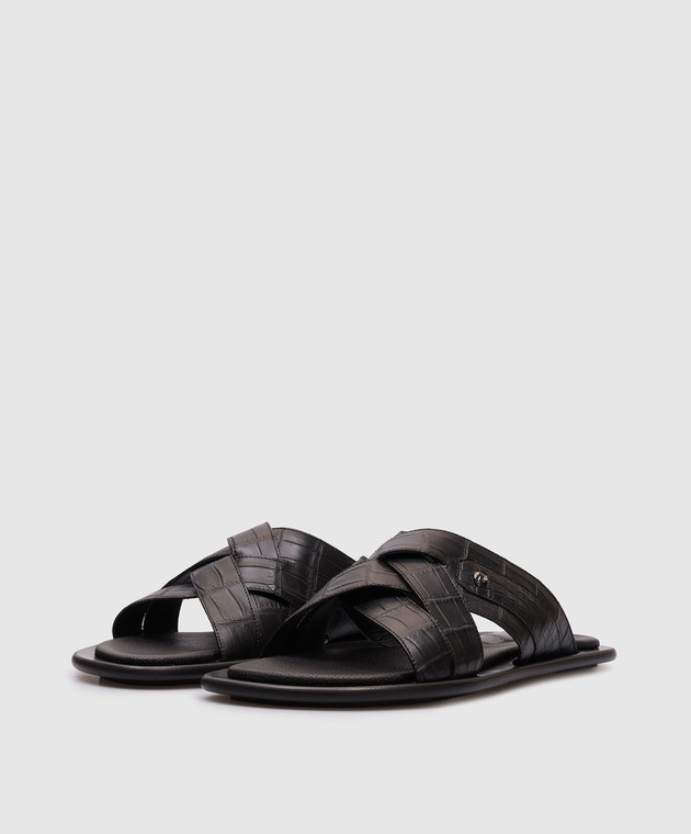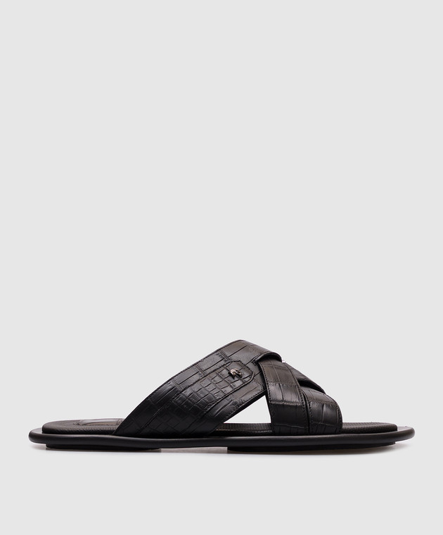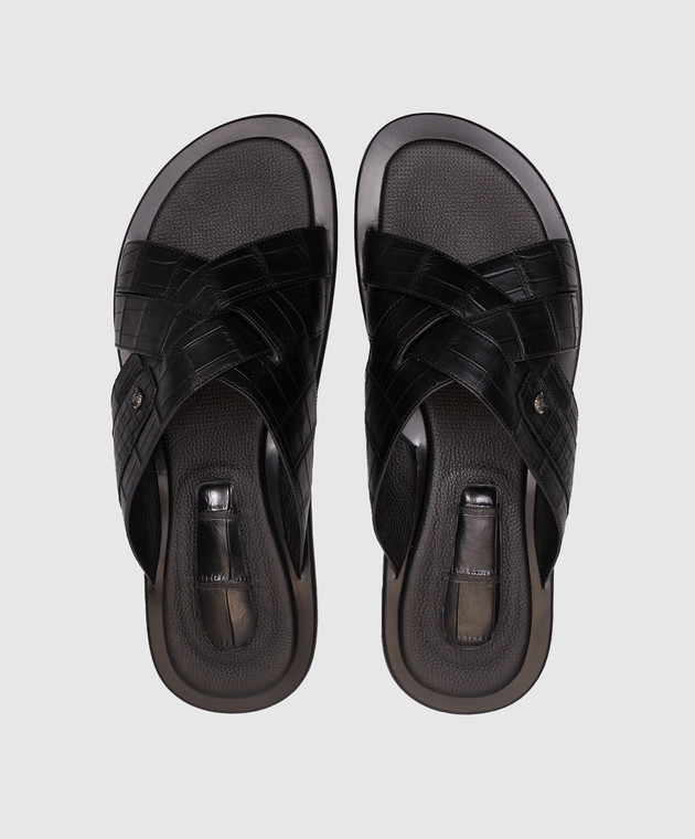 Черные шлепанцы из кожи крокодила