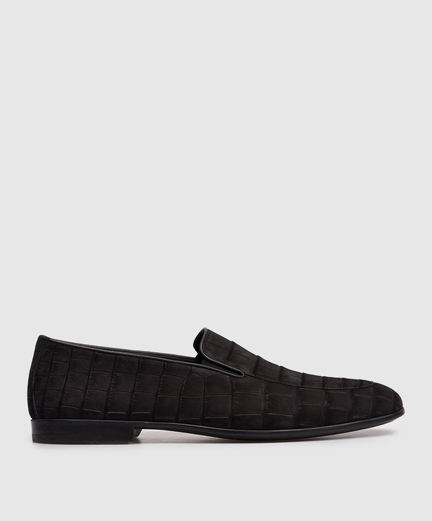 Черные слипоны из кожи крокодила с эффектом нубука