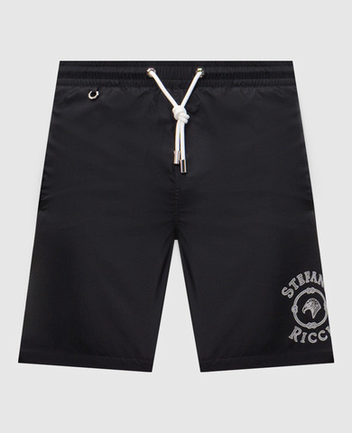 Черные шорты для плавания с принтом BURNING MONOGRAM