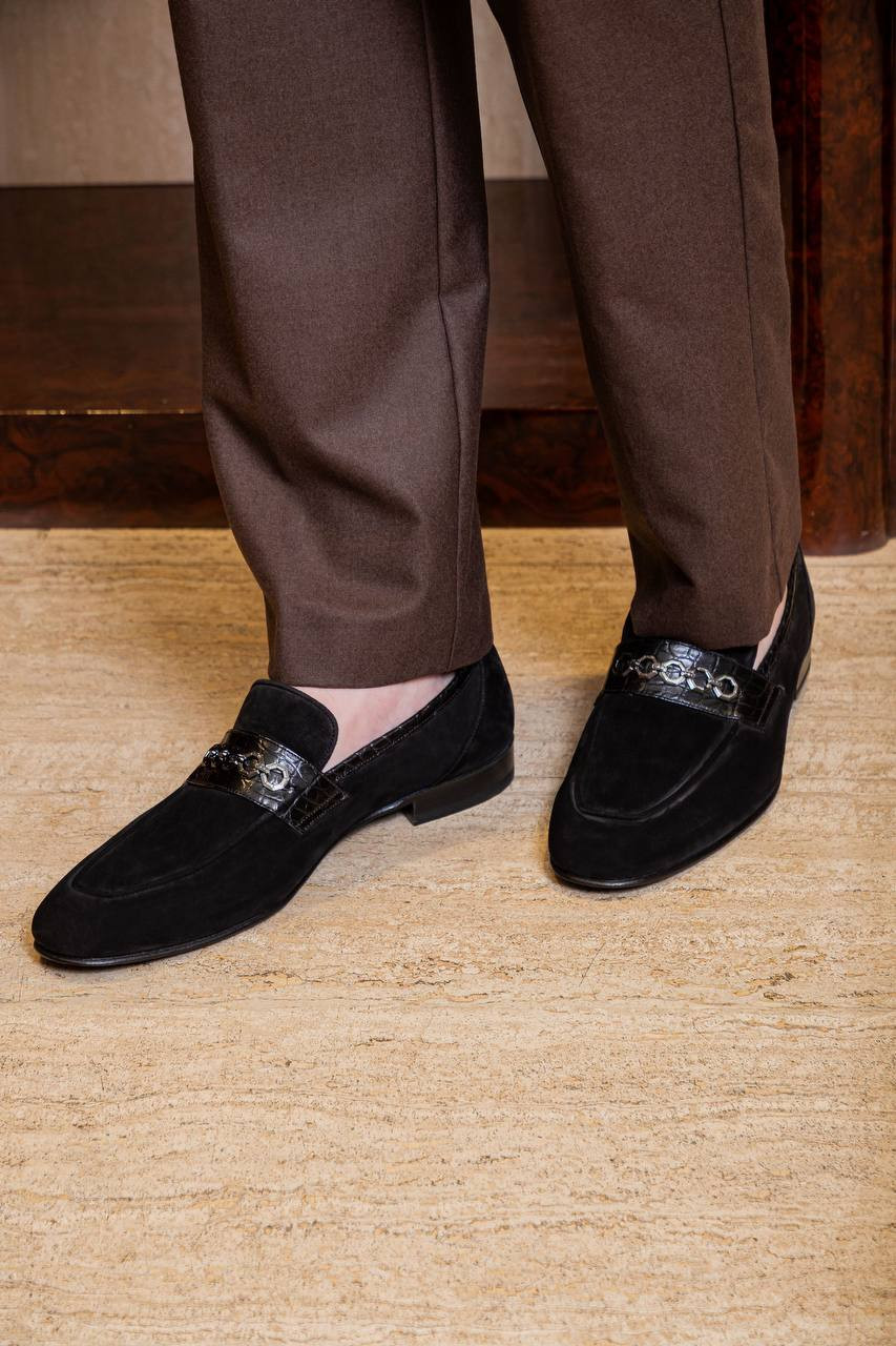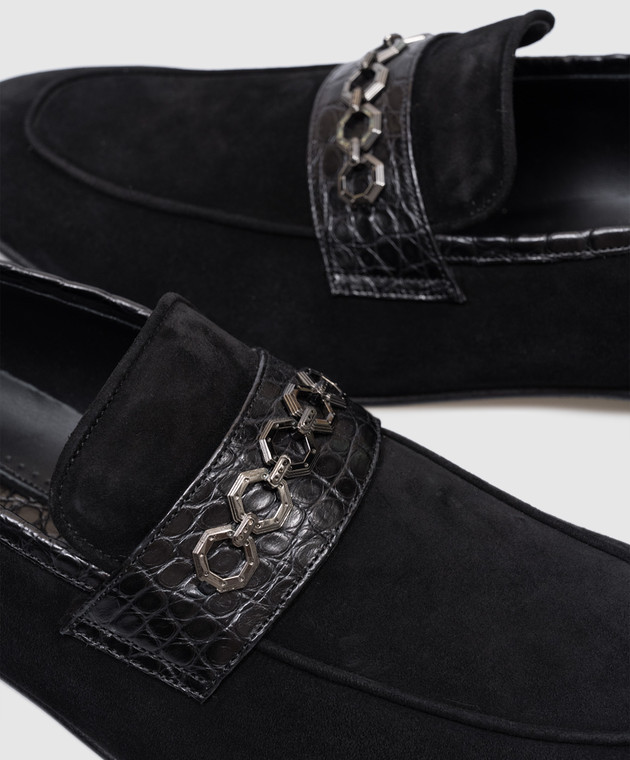 • Декор вставки из кожи крокодила, металлическая цепочка в виде брендовых восьмиугольников