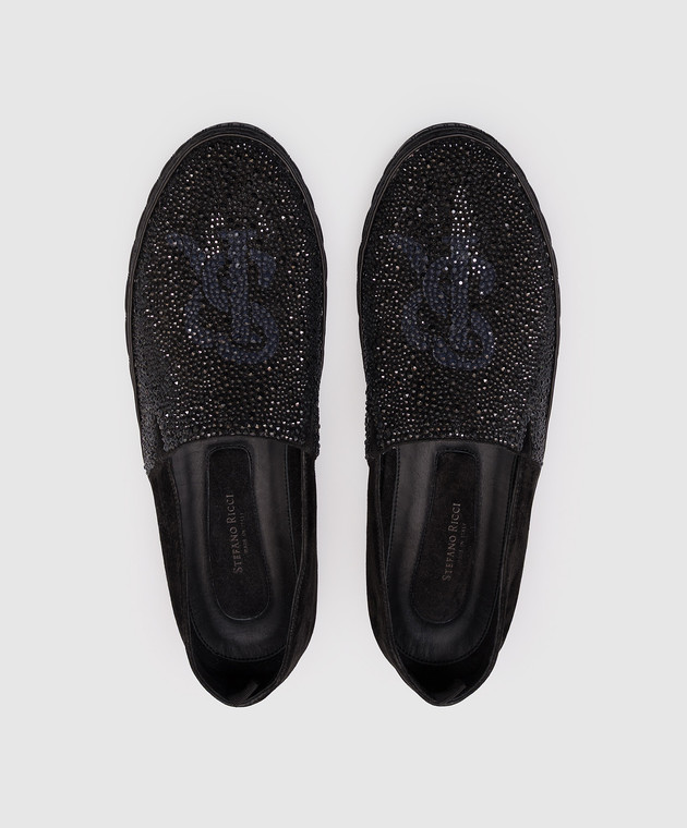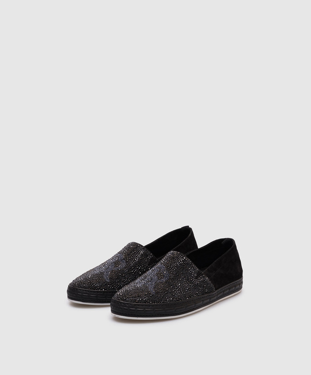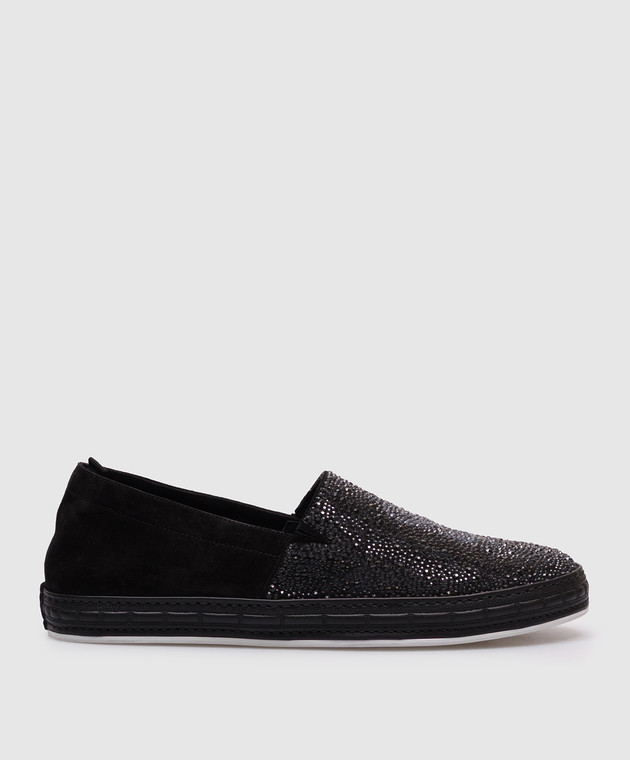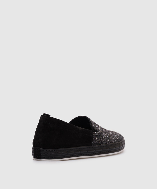 Черные замшевые слипоны с кристаллами