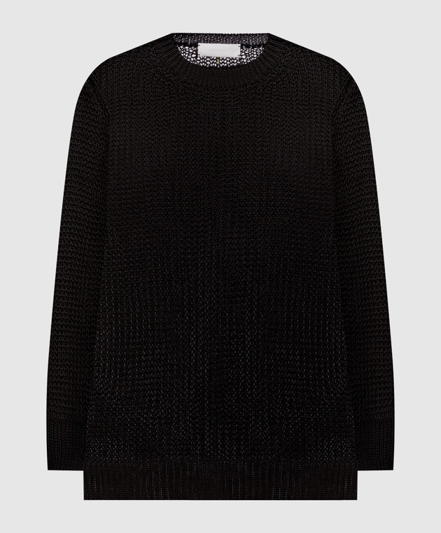 Черный ажурный свитер из льна