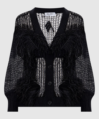 Черный ажурный свитер с шерстью и перьями страуса