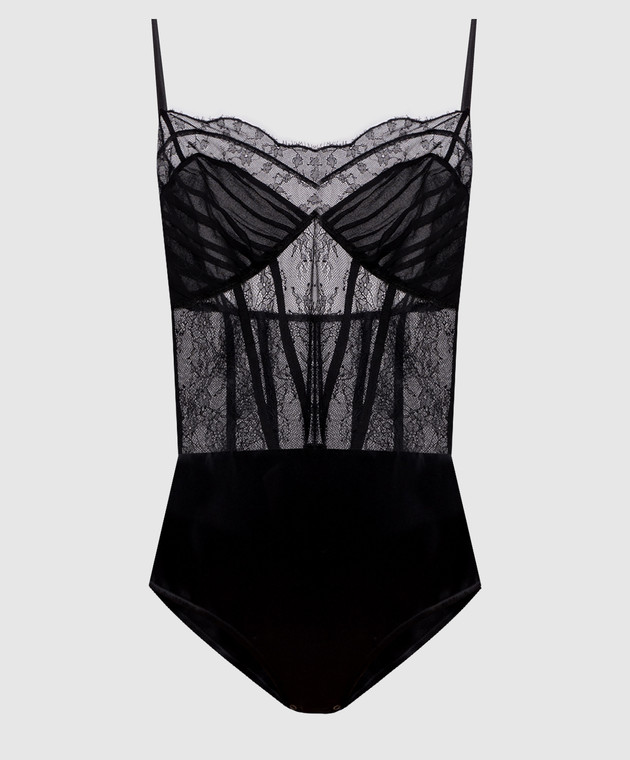 Черный боди из шелка с кружевом