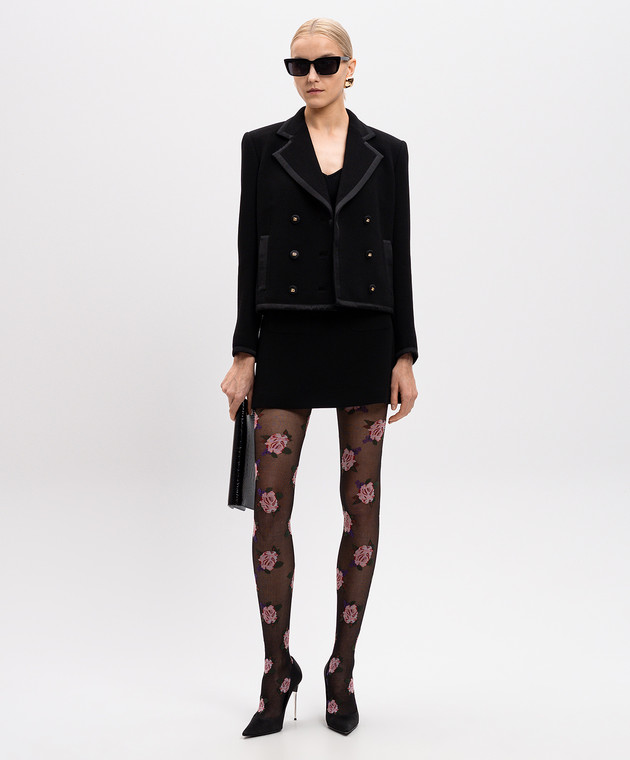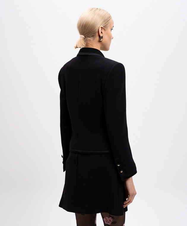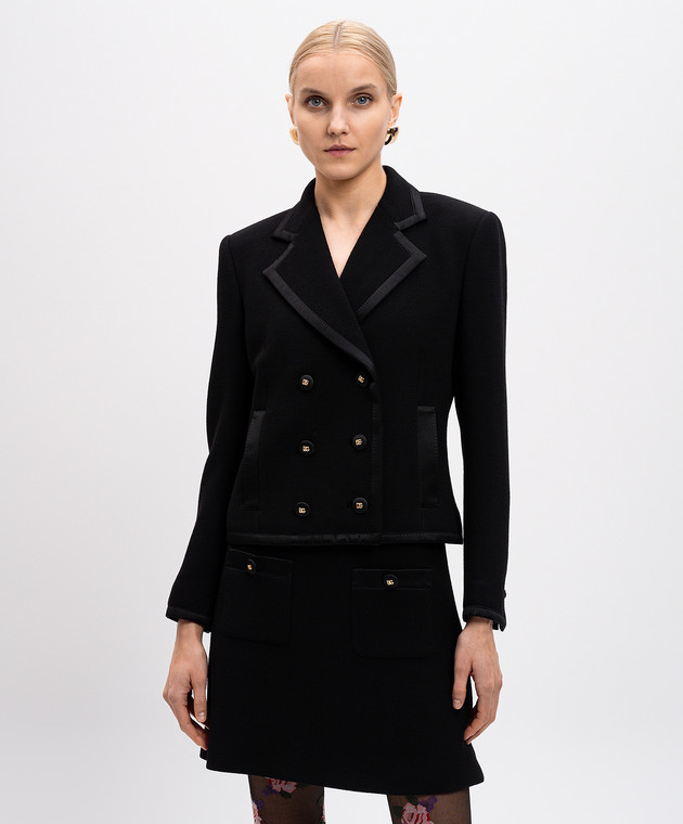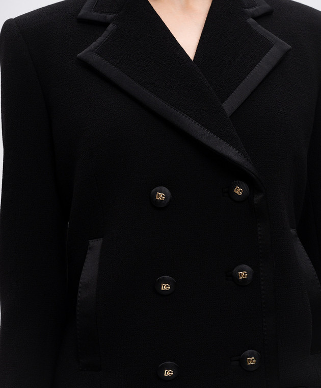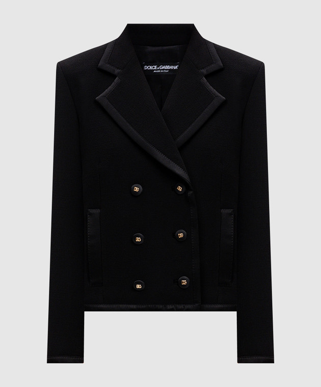 Черный двубортный жакет из шерсти и шелка с логотипом