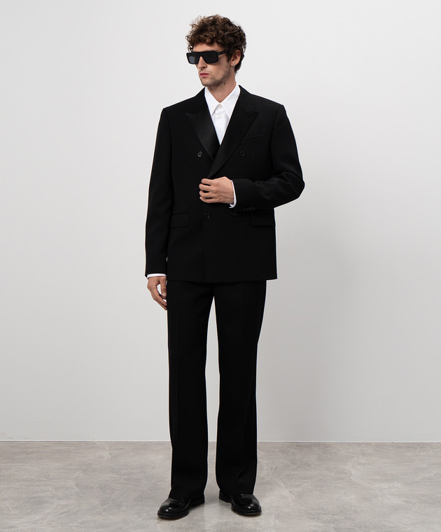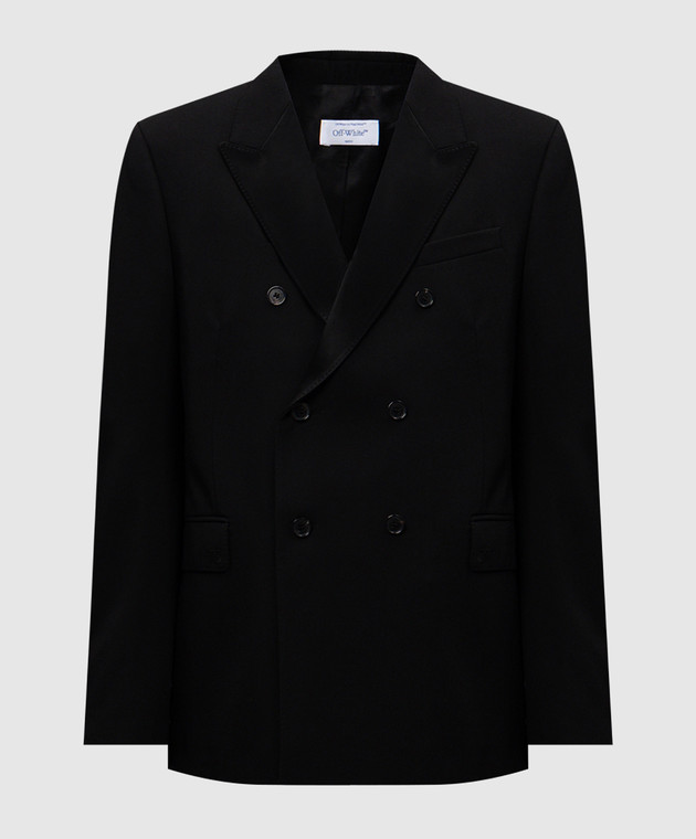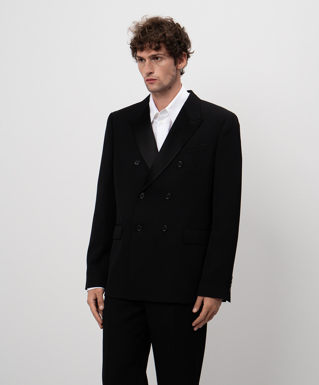 Черный двубортный пиджак из шерсти