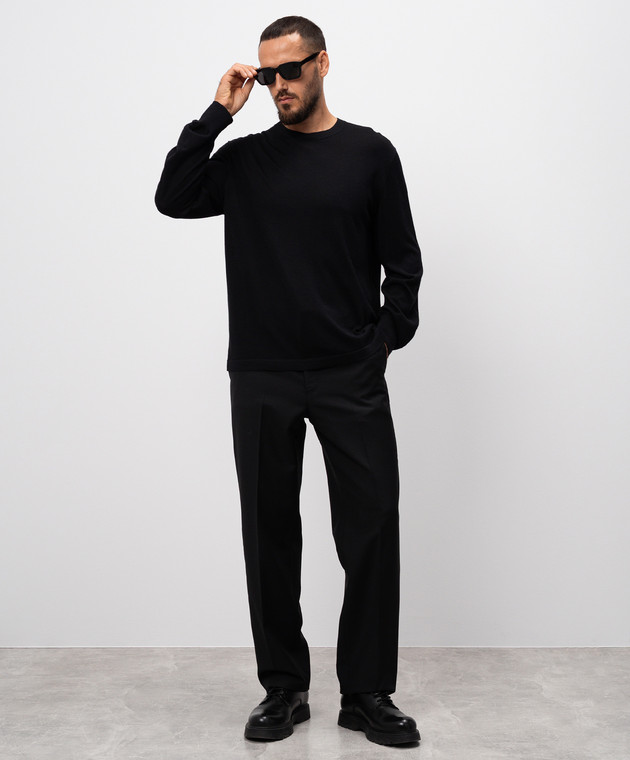 Черный джемпер из шерсти и шелка с вышивкой логотипа