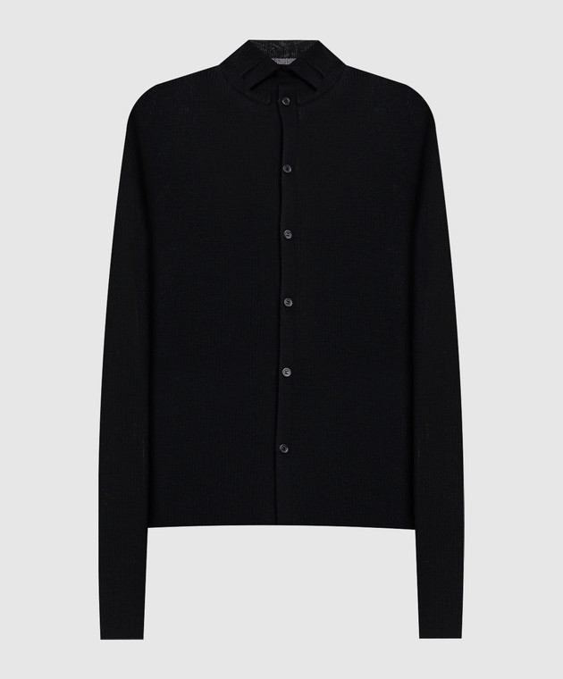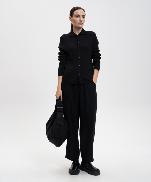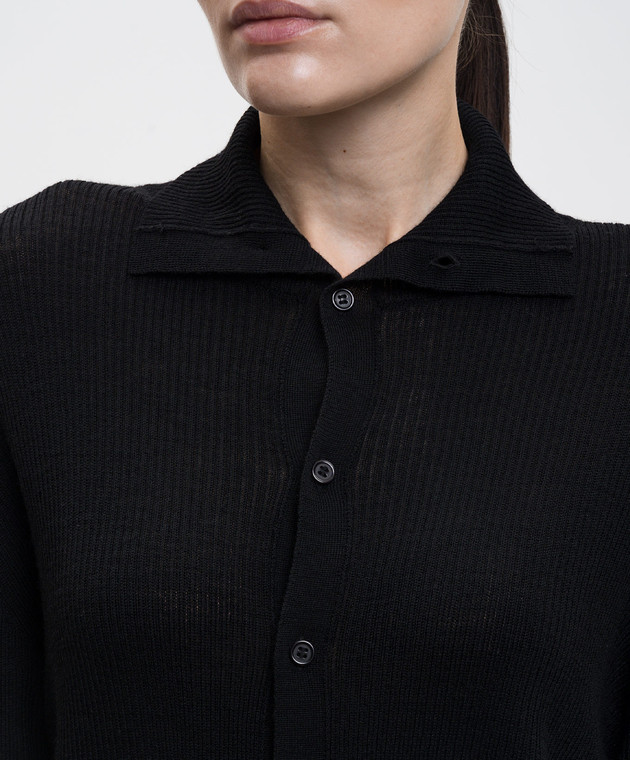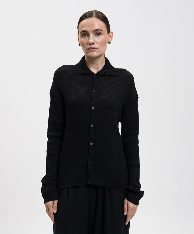 Черный кардиган из шерсти в рубчик