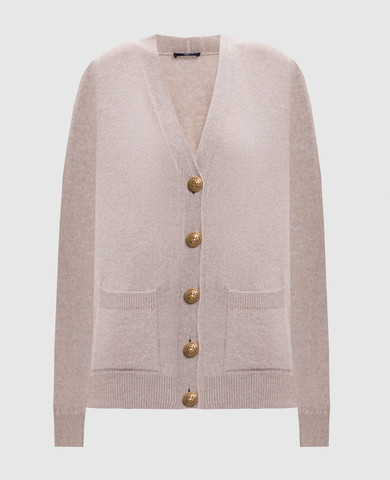 Бежевый кардиган с ажурным логотипом