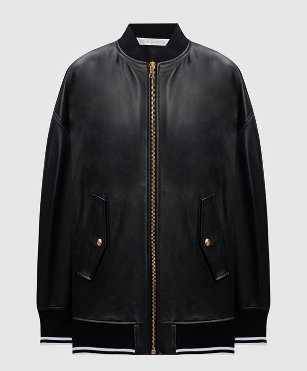 Черный кожаный бомбер с принтом логотипа