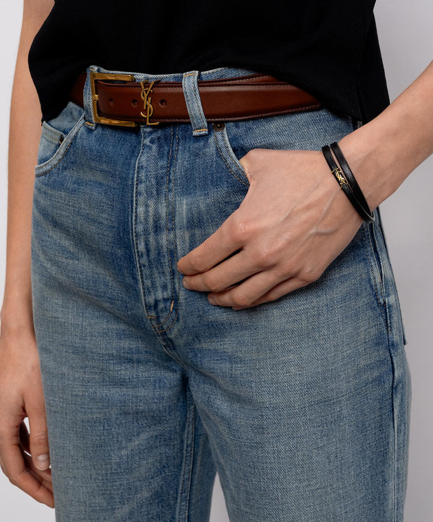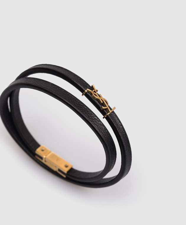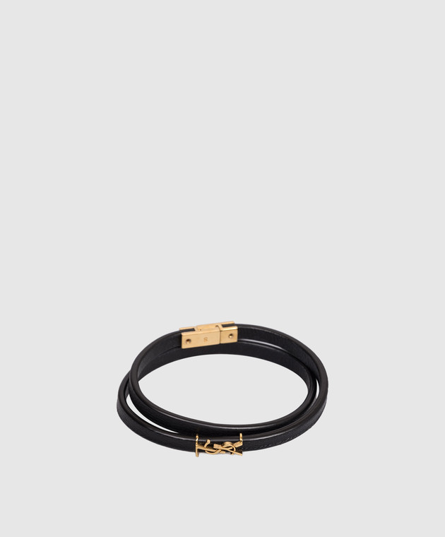 Черный кожаный браслет в два оборота с монограммой логотипа