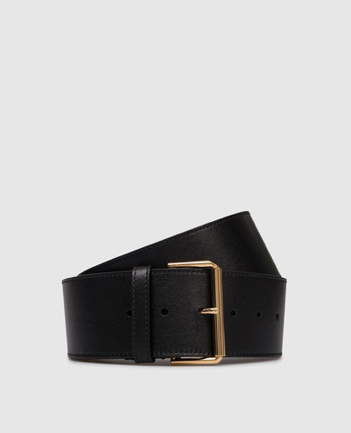 Черный кожаный глянцевый ремень с логотипом