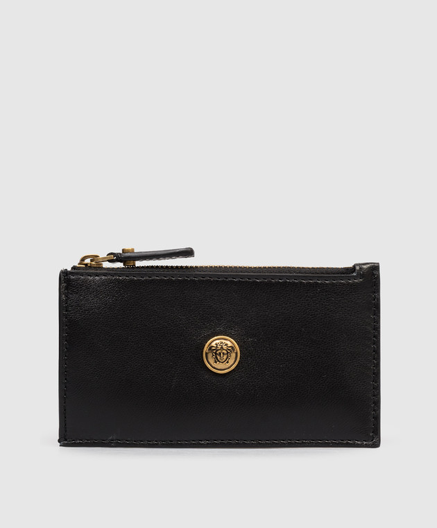 Черный кожаный картхолдер с фактурной эмблемой