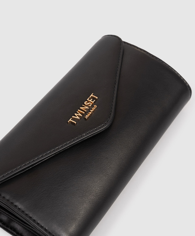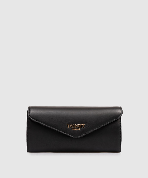 Черный кожаный клатч-кошелек с металлическим логотипом