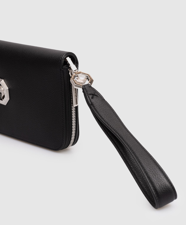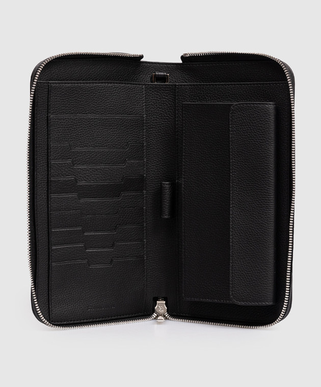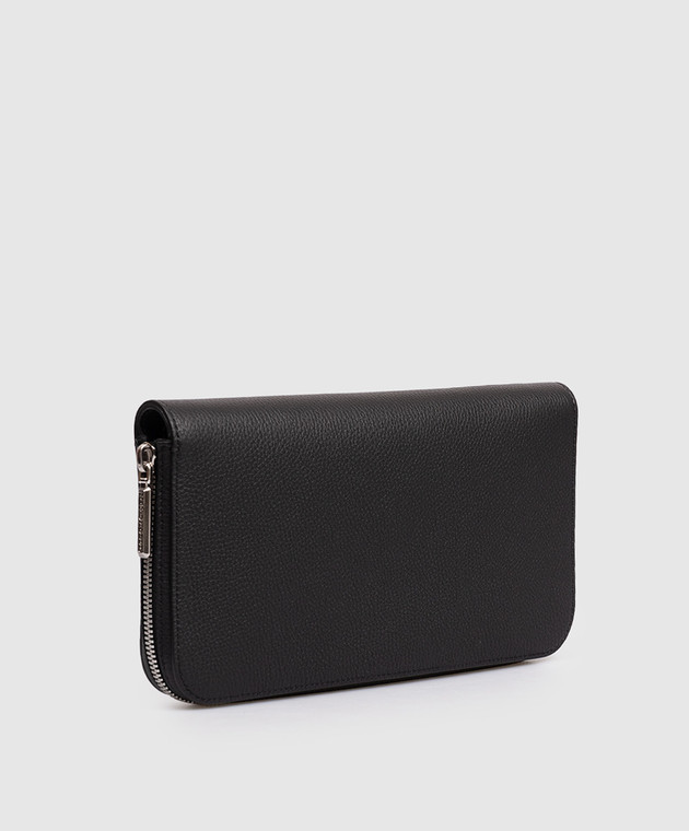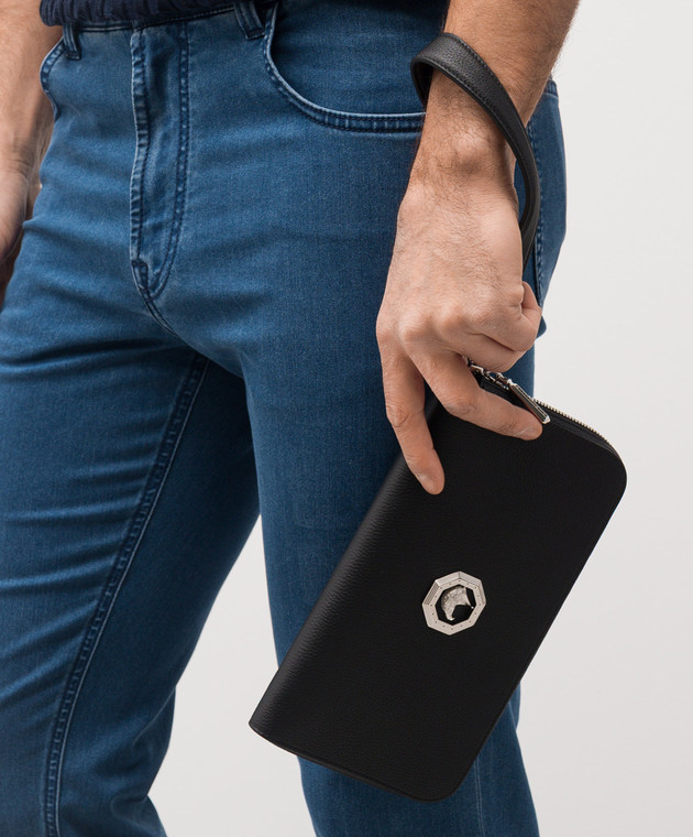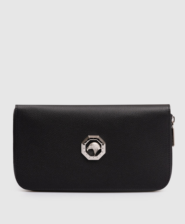 Черный кожаный кошелек с металлической эмблемой