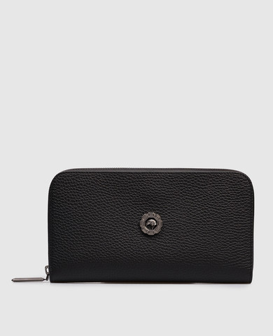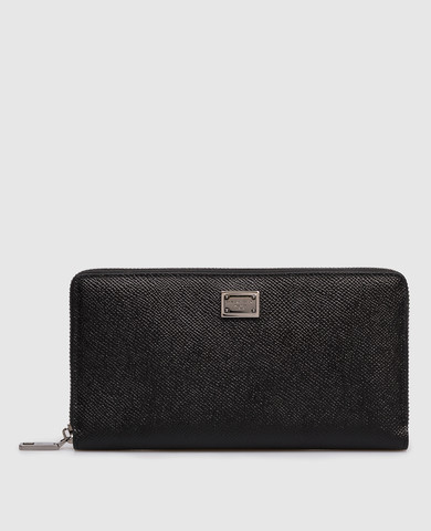 Черный кожаный кошелек с принтом логотипа