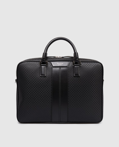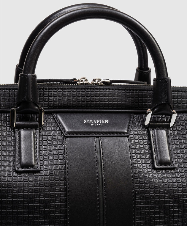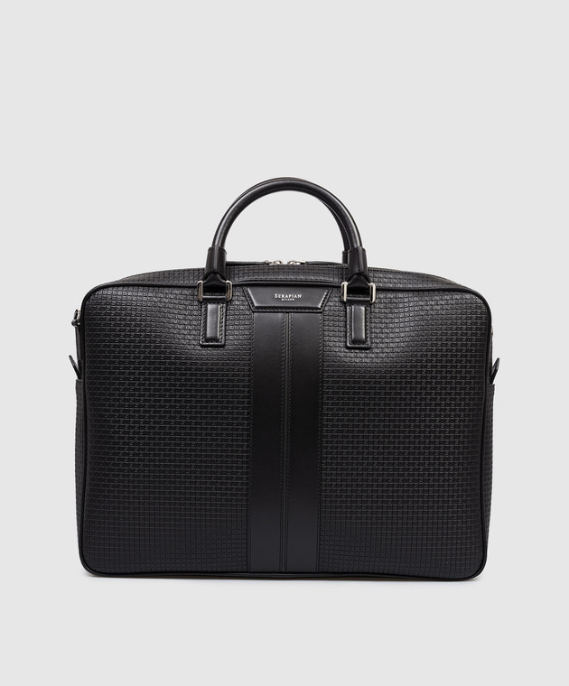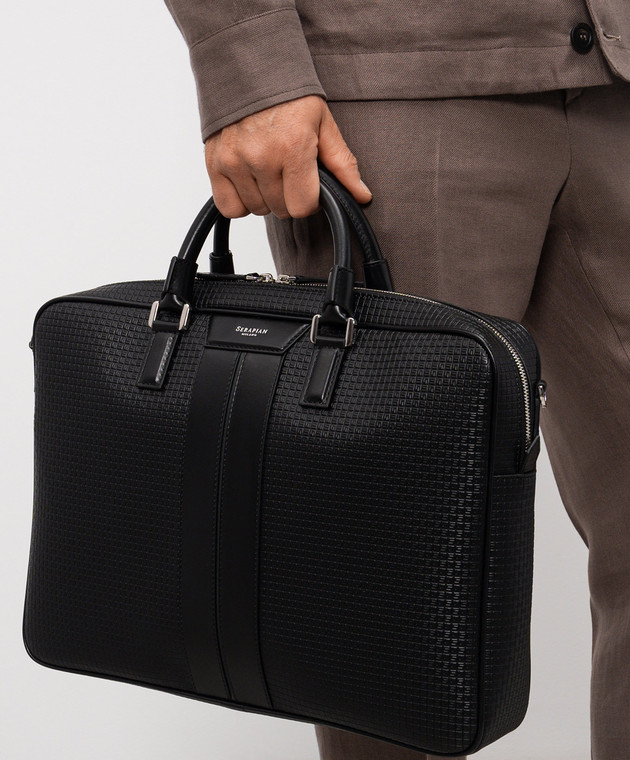 Черный кожаный портфель с принтом логотипа