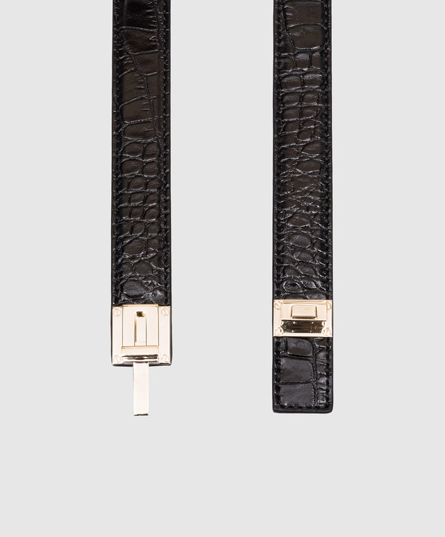 Черный кожаный регулируемый пояс с тиснением под кожу крокодила