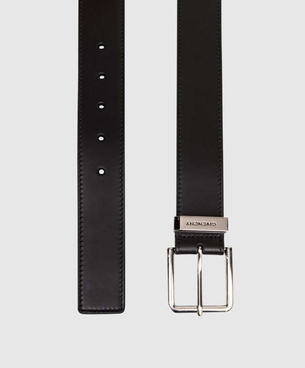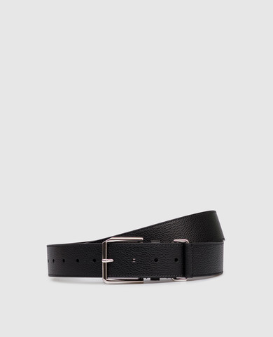 Черный кожаный ремень с гравировкой логотипа