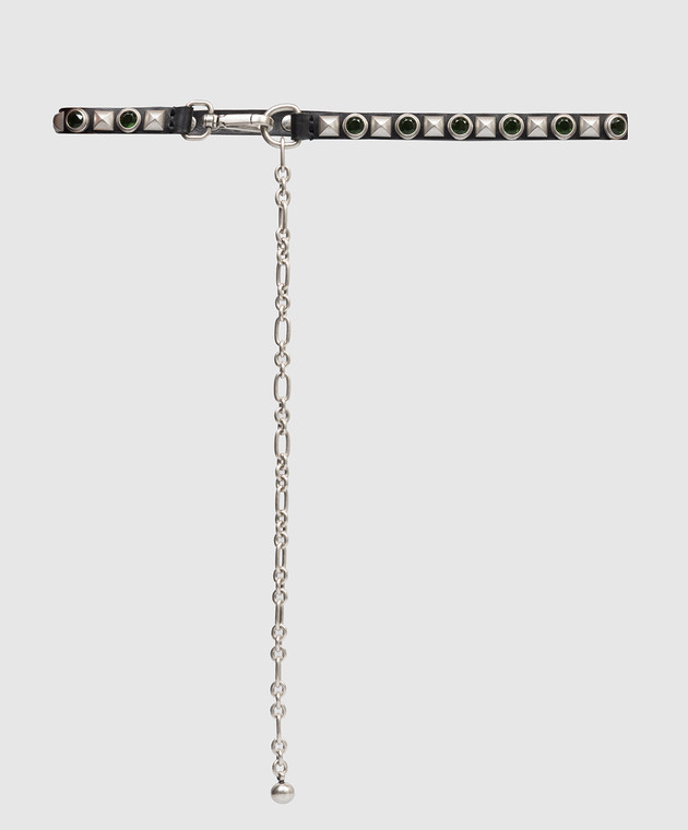 Черный кожаный ремень с кристаллами и заклепками