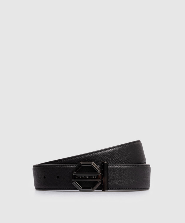 Черный кожаный ремень с логотипом
