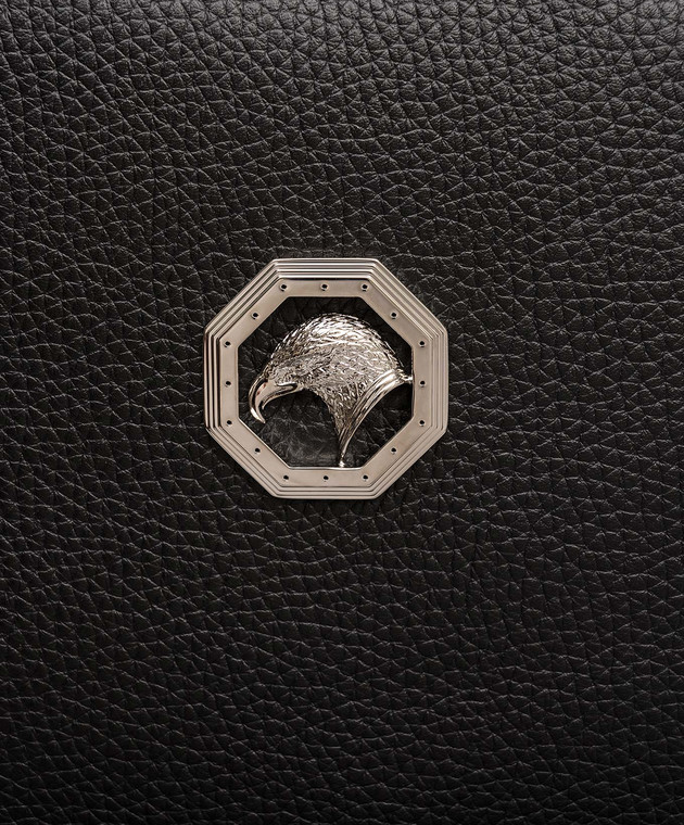 Черный кожаный рюкзак с эмблемой с палладиевым покрытием