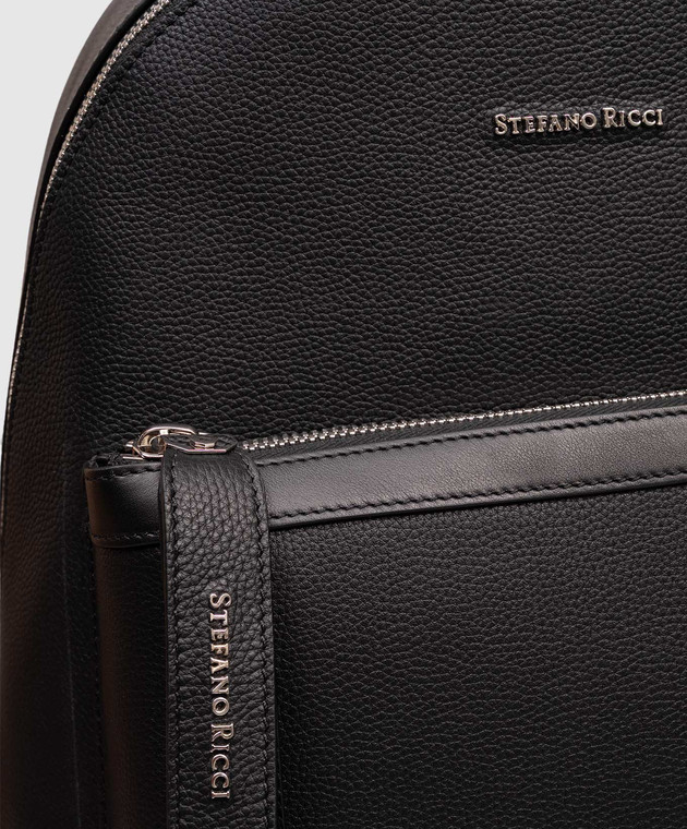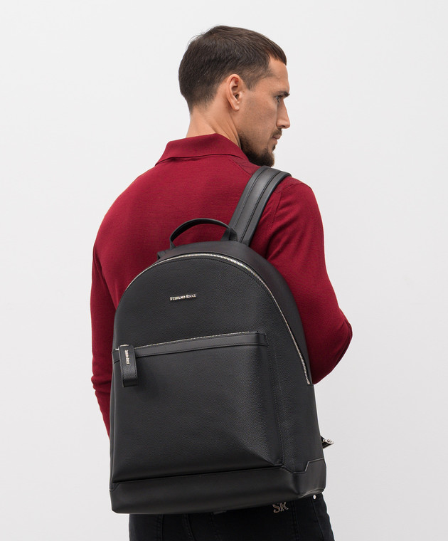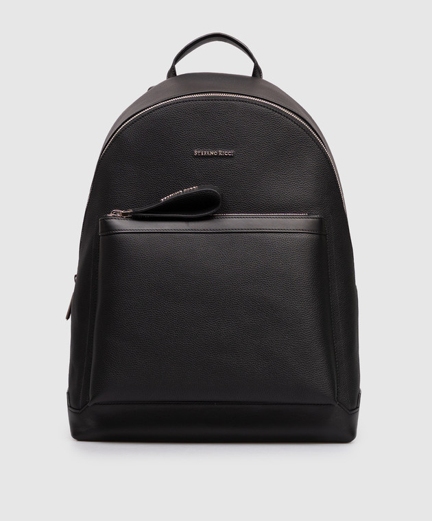 Черный кожаный рюкзак с фактурным логотипом