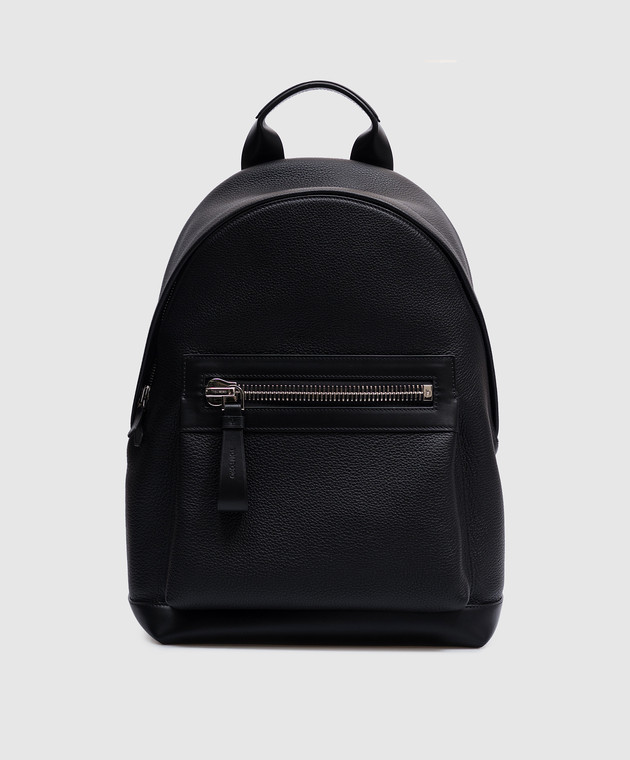 Черный кожаный рюкзак с логотипом