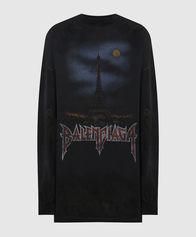 Черный лонгслив PARIS MOON с винтажным эффектом
