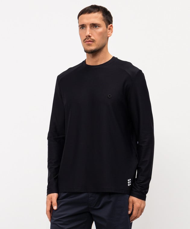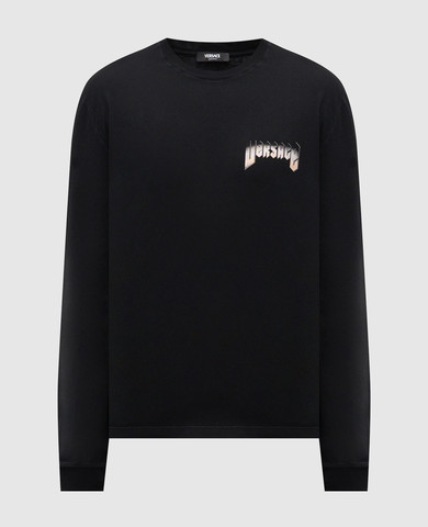 Черный лонгслив с фактурной эмблемой