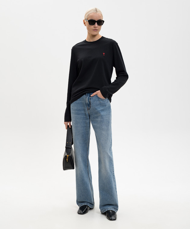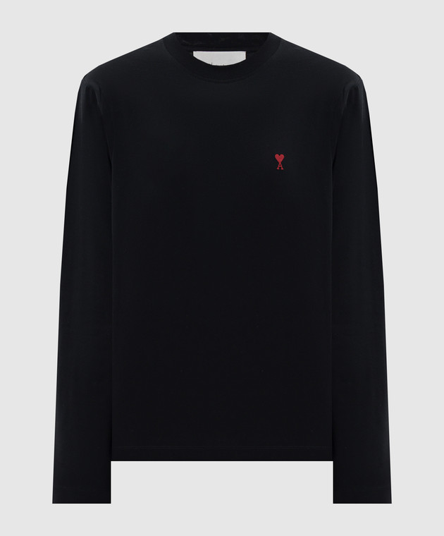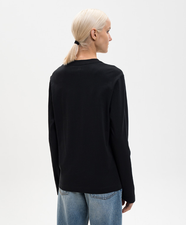 Черный лонгслив с контрастной вышивкой