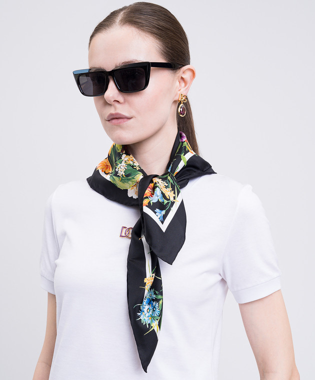 Черный платок из шелка в принт