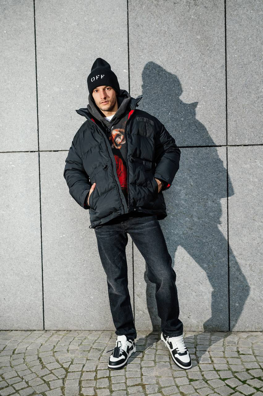 Черный пуховик с логотипом