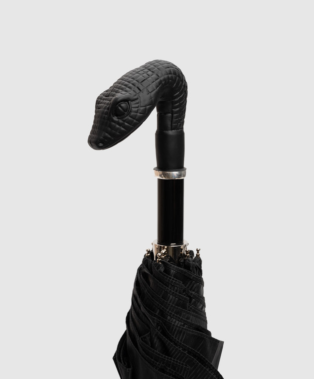 Черный складной зонтик в узор с ручкой в виде головы змеи
