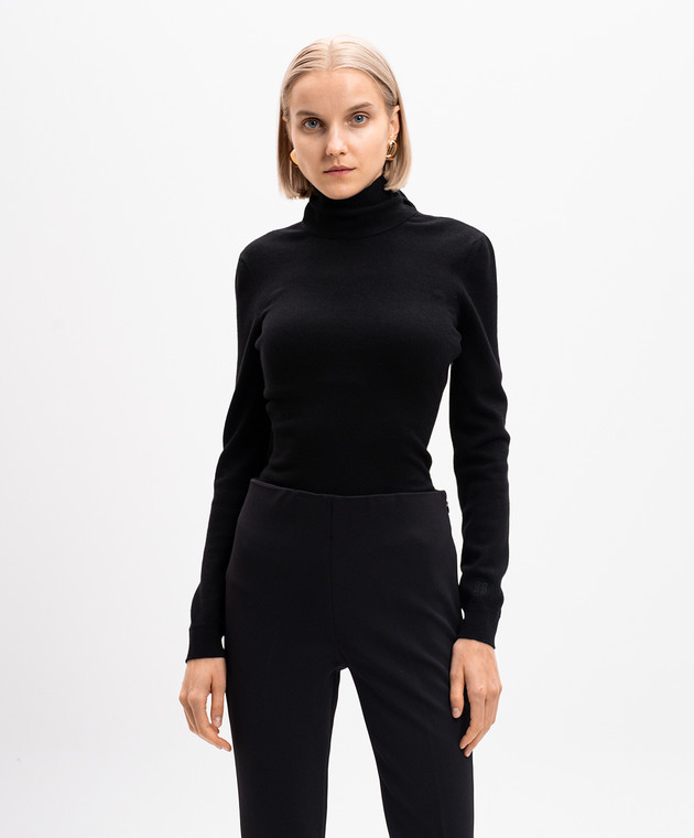 Черный свитер с шерстью и кашемиром с вышивкой эмблемы 4G с фигурным вырезом