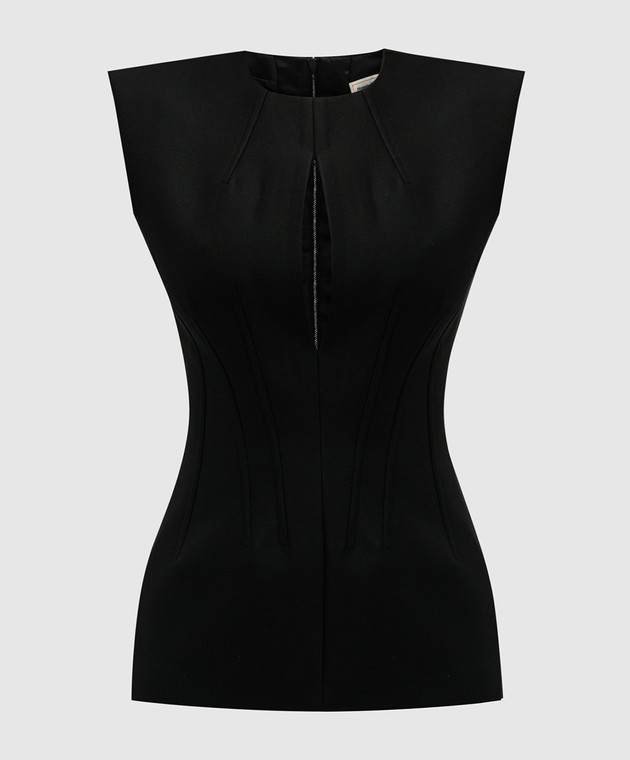 Черный топ из шерсти с фигурным вырезом
