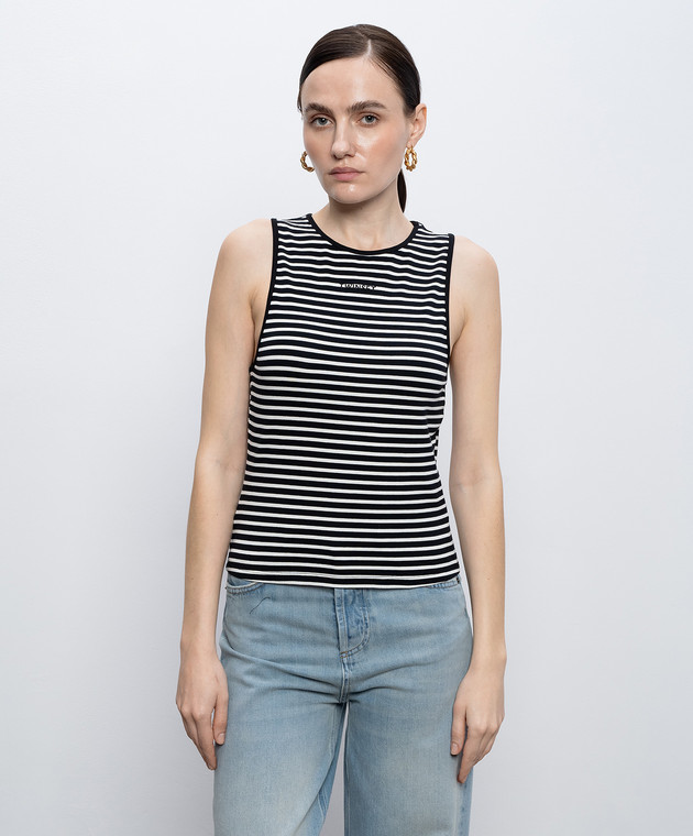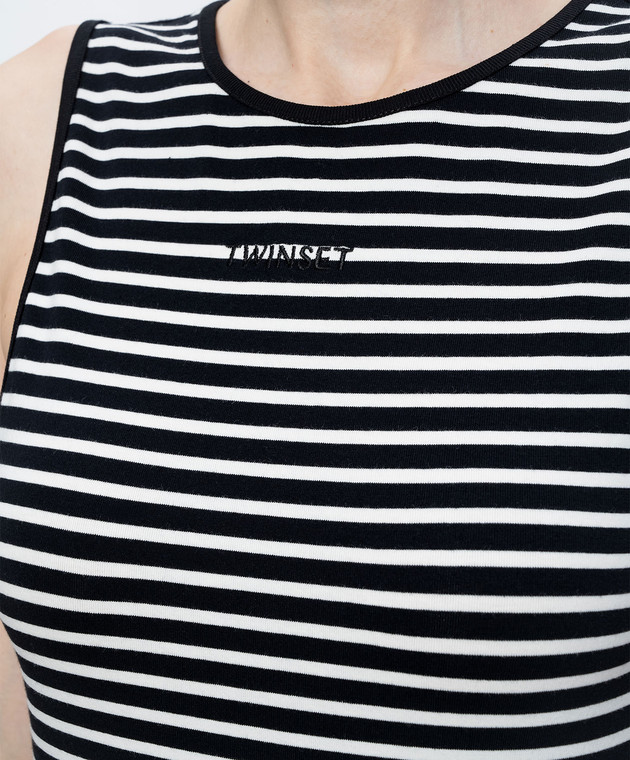 Черный топ в полоску с вышивкой логотипа