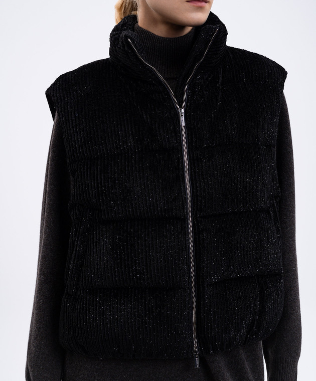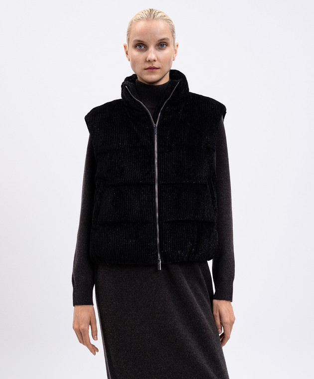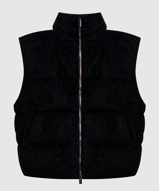 Черный вельветовый пуховый жилет