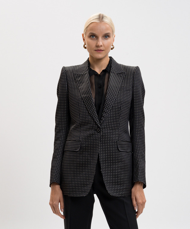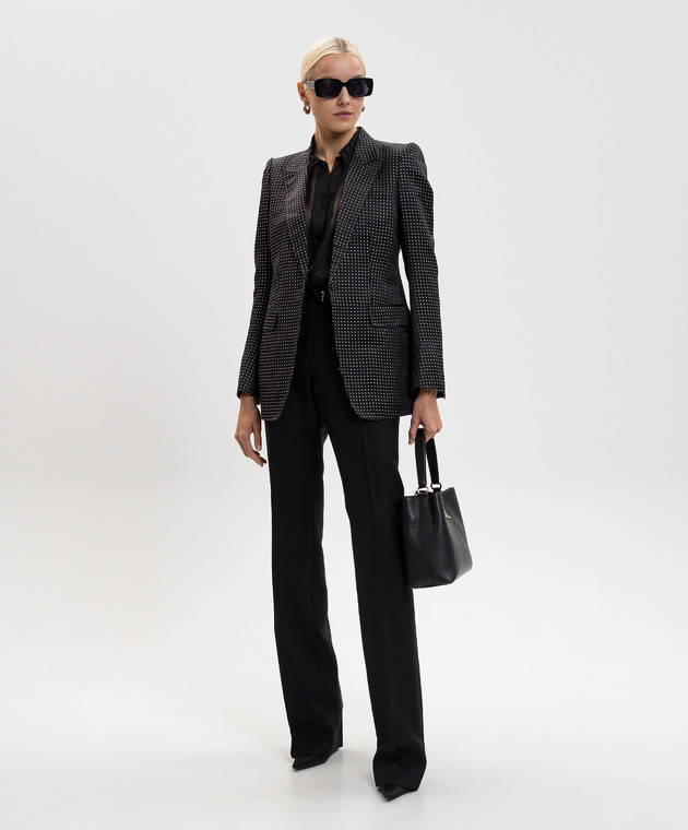 Черный жакет из шелка в горох