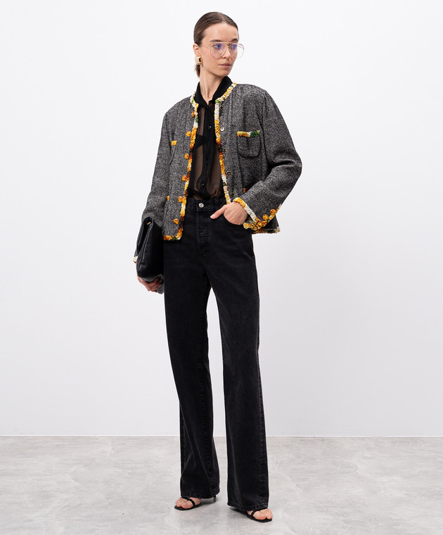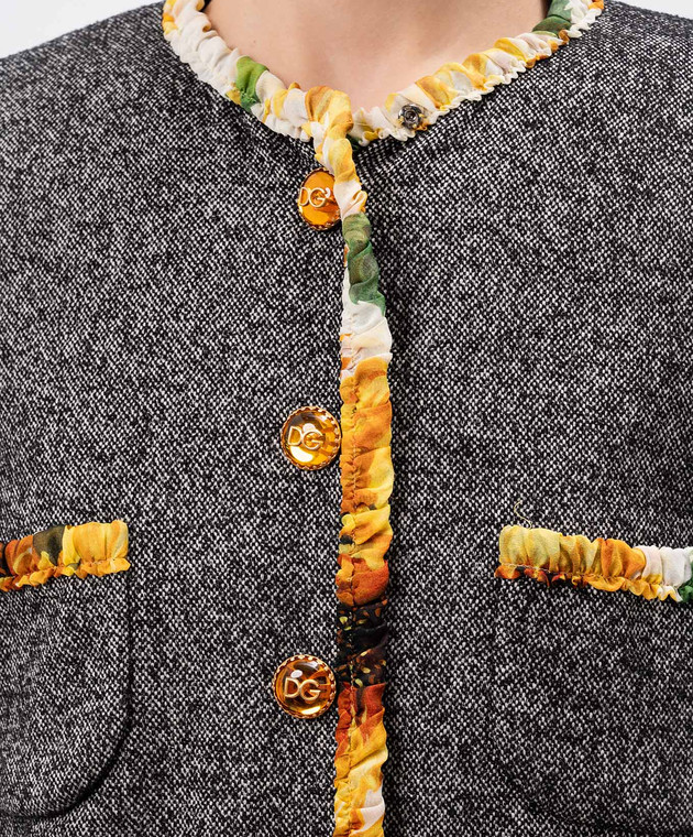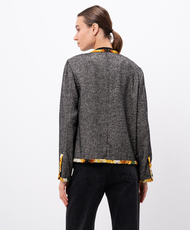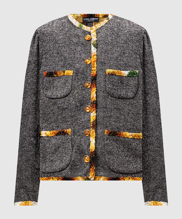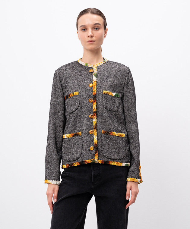 Серый жакет с шерстью и шелком с контрастной отделкой