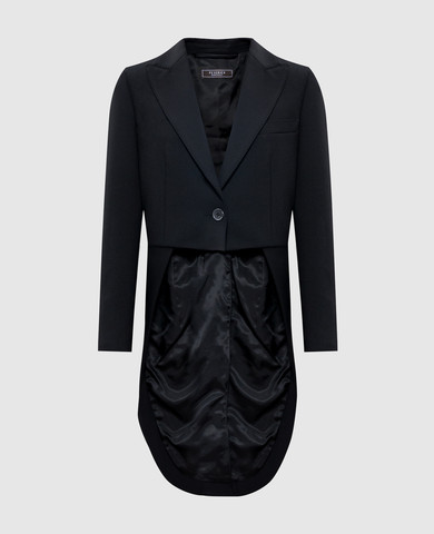 Черный жакет с шерстью со шлейфом
