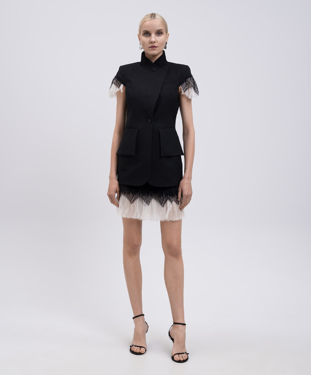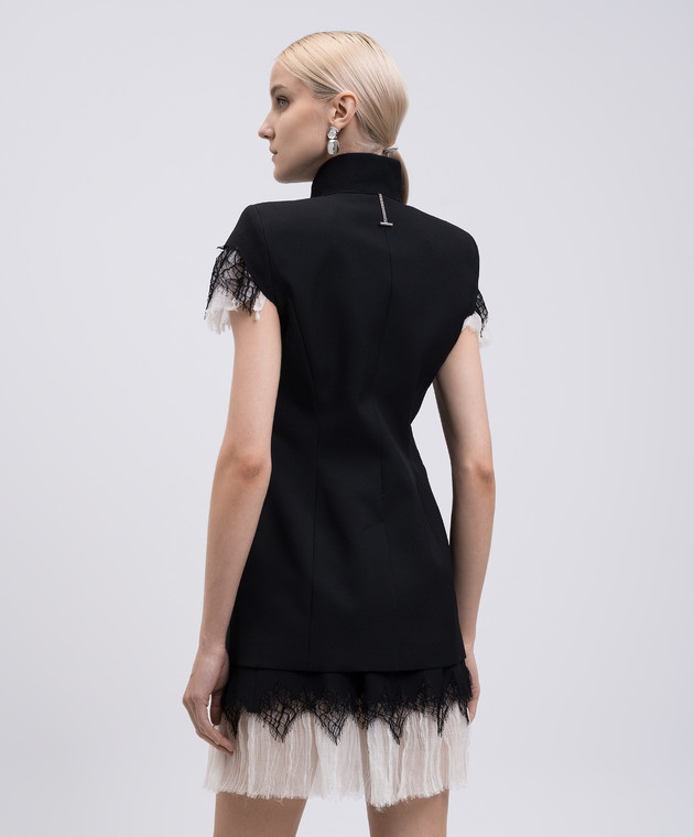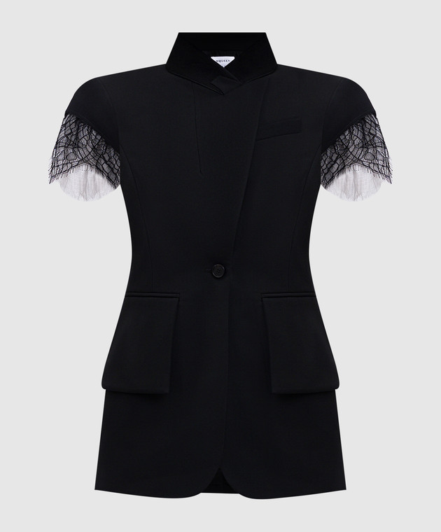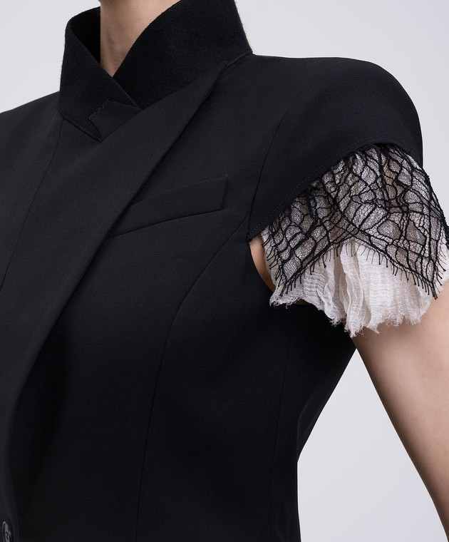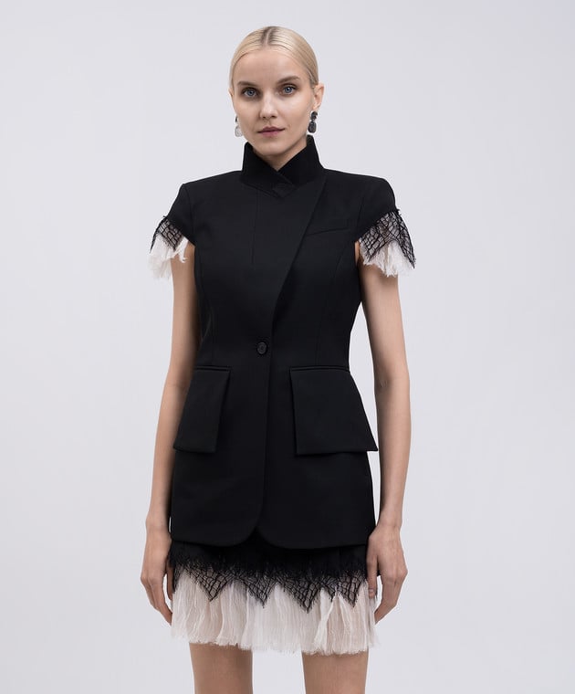 Черный жилет из шерсти и шелка с кружевом