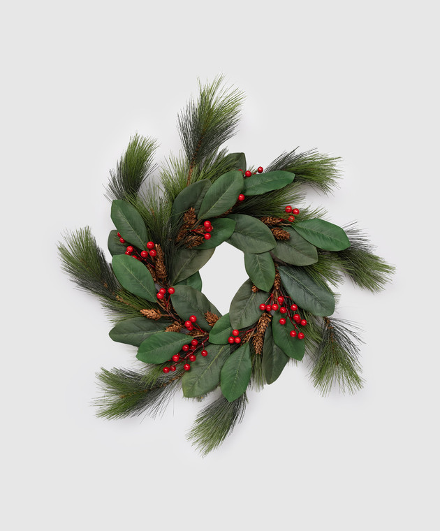 Декоративный рождественский венок с сосновыми ветвями и ягодами магнолии